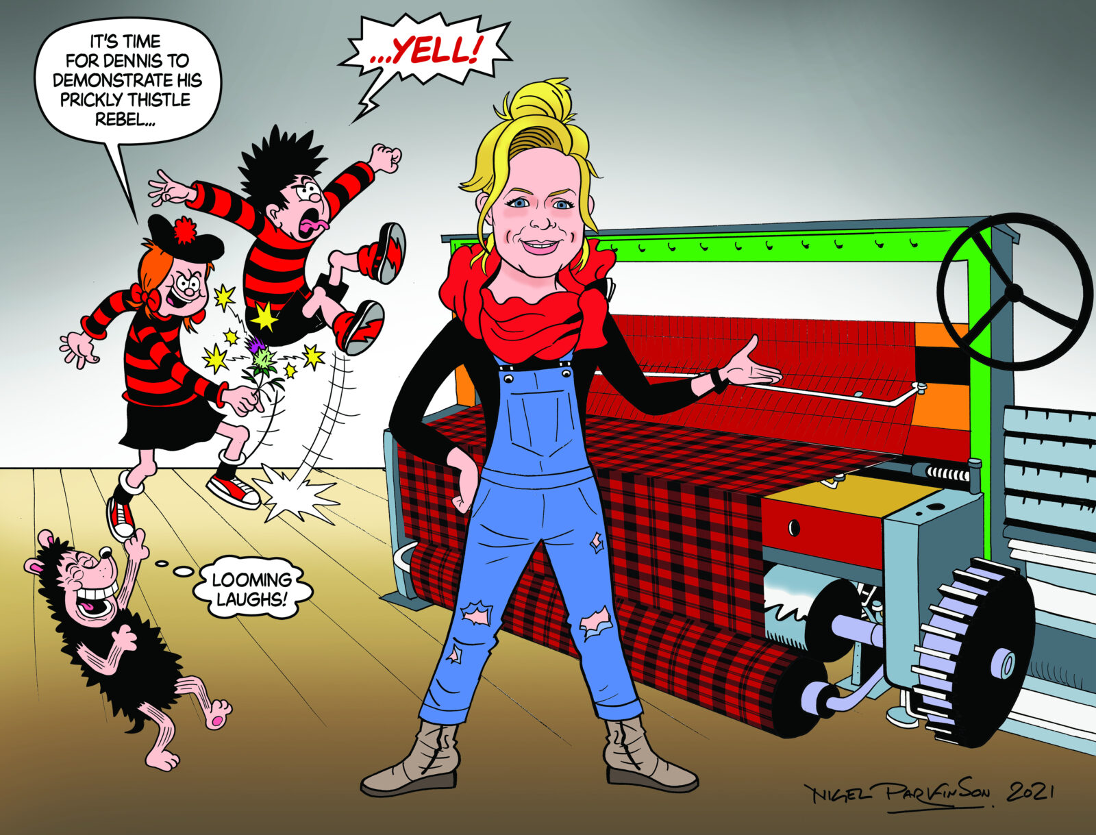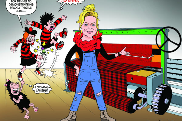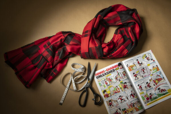 This celebration tartan was created to mark the 70th birthday of one of Scotland's most iconic comic characters, Dennis The Menace. Dennis first appeared on the edition cover of Beano on the 17th March 1951 and this tartan has been inspired by the dates and colours connected to this occasion. The black and red naturally represent the famous jumper that he has always worn - a true sustainability king.